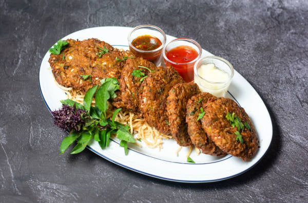 Mix of vegetables infused with aromatic spices and herbs stuffed with goat cheese